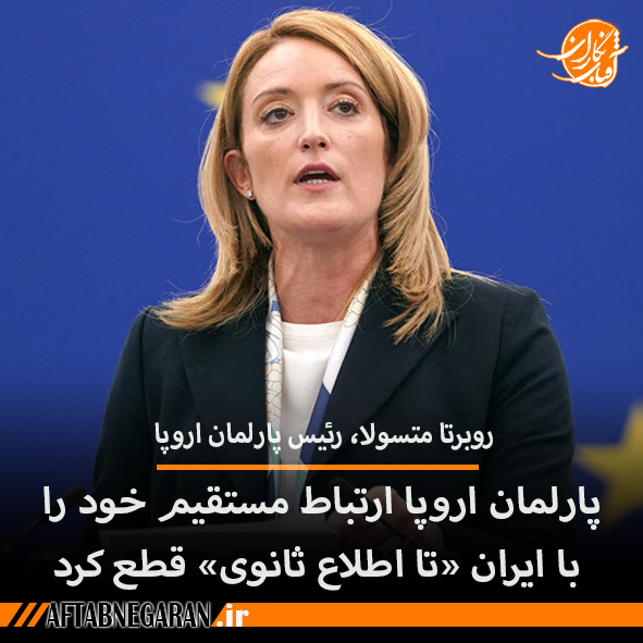 ????روبرتا متسولا، رئیس پارلمان اروپا می‌گوید تا اطلاع ثانوی ارتباطات و گفتگوهای مستقیم میان این نهاد اروپایی و جمهوری اسلامی ایران قطع می‌شود. متسولا همچنین با اشاره به آنچه سرکوب خشونت‌آمیز معترضان در ایران خوانده تاکید کرد که «اروپا چشمان خود را روی معترضانی که چشم امید به ما دارند، نخواهند بست.»