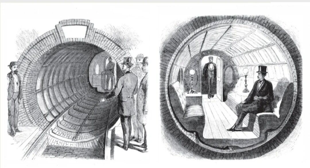 آلفرد ایلی بیچ که تقریباً ۲۵ سال پیش از آن و در سن ۲۰ سالگی با شریکش، مالک Scientific American شده بود، نقشهای در ذهن داشت که علاوه بر حذف ترافیک، به تمیز شدن هوا هم خدمت میکرد ؛ او در سال ۱۸۷۰ میلادی از این پروژه مخفی رونمایی کرد.